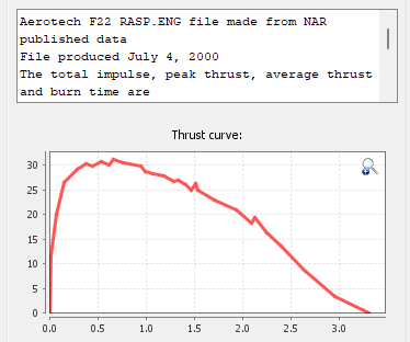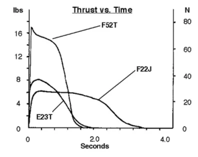 The F22 seemed like a great motor sitting midway in the F-impulse class, but the 22 N of average thrust was struggling to give me suitable performance for the size of vehicle that I am considering. The AeroTech F40-7 is also stocked by Wizard Rockets and gives a much heftier 40 N of average thrust.
