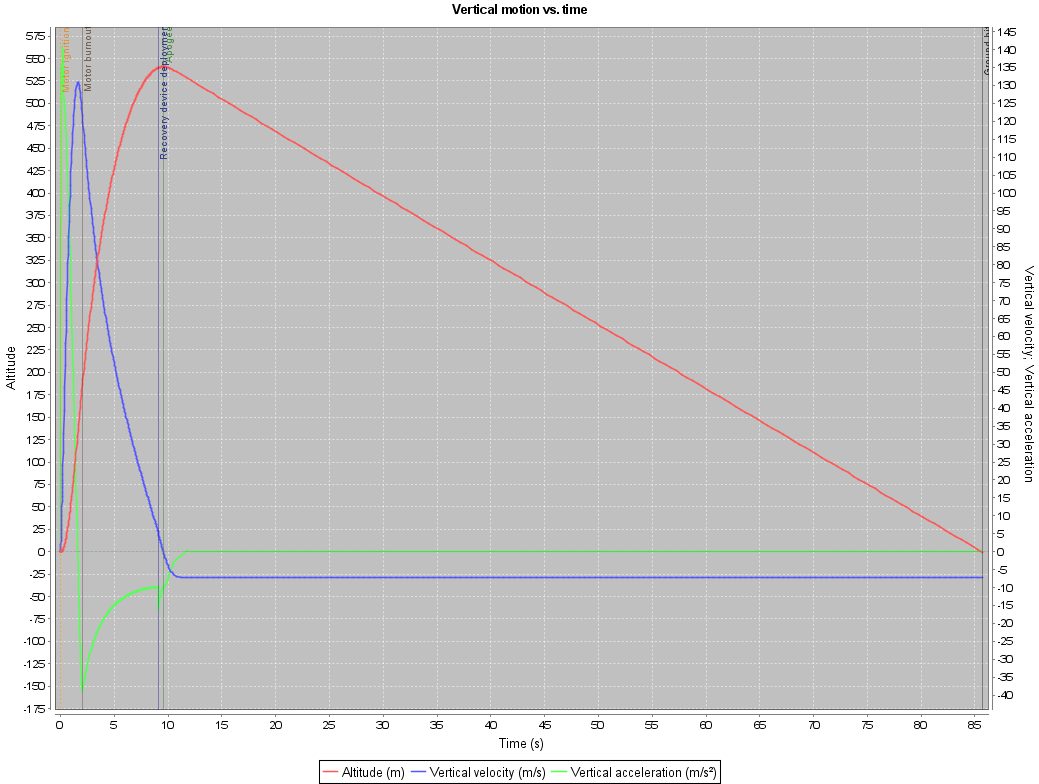 | Time to apogee: | 9.5 s |