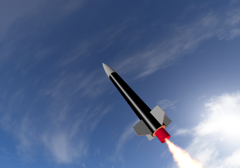 I will of course blog in the near future with the build progress. What better way to end this post than with a gratuitous rendering of the rocket in flight.