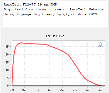 First I explored the AeroTech F22-7J, which is a Black Jack motor and part of their 29 mm Reloadable Motor System (RMS). With a long burn time it should enable an entertaining long flight, and thankfully Wizard Rockets has the F22-7J in stock in the UK.